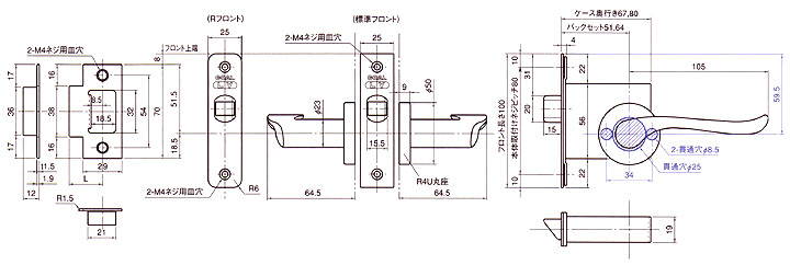 GOALレバーハンドル室内錠寸法図面