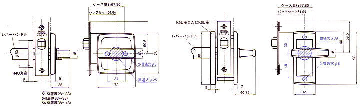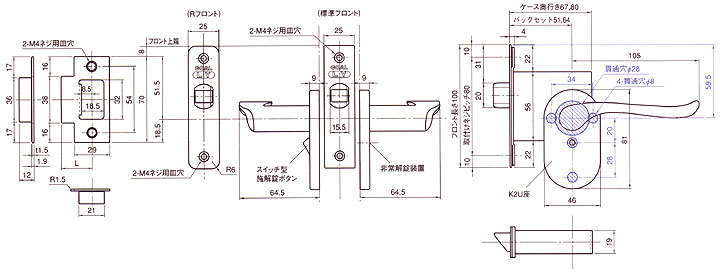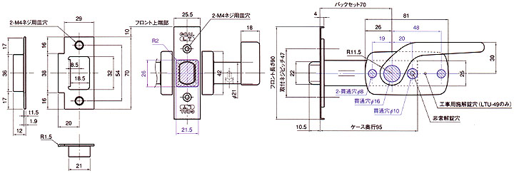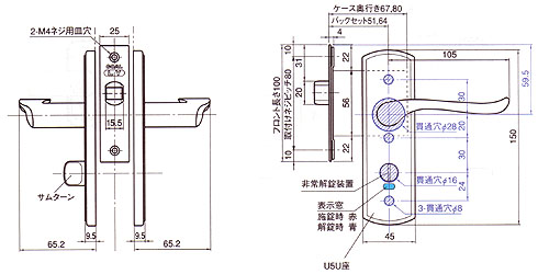 レバーハンドル浴室錠LTU-4寸法図面