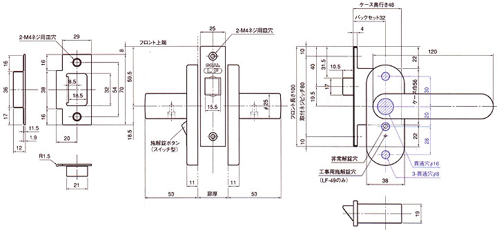 レバーハンドル浴室錠LF-4Z 寸法図面