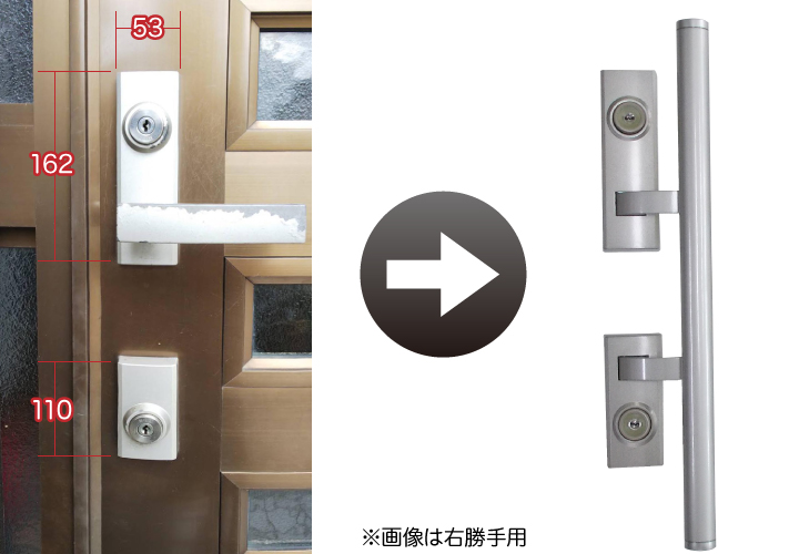 すでに廃盤となりました。レバーハンドルの色が剥げて見苦しくなってきた頃だと思います。また、キーの操作やドアの中に入っている錠ケースの動きも渋くなってきていることと思われます。