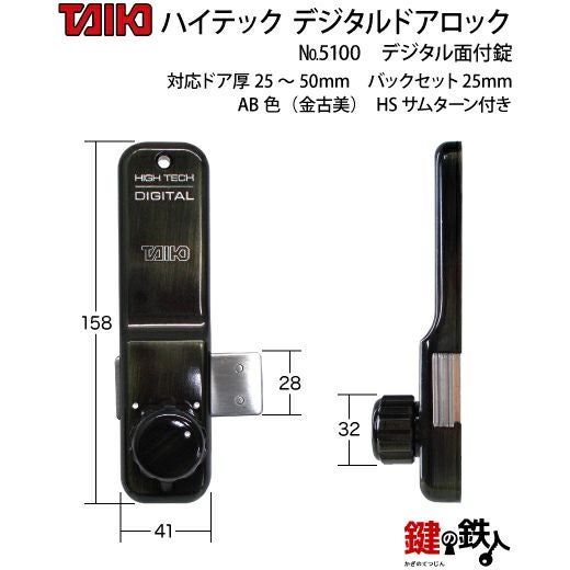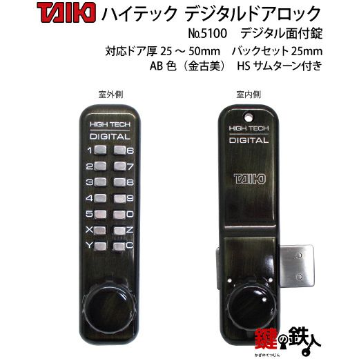 デジタル・ドアロック5100面付錠(補助錠)HSサムターン付金古美