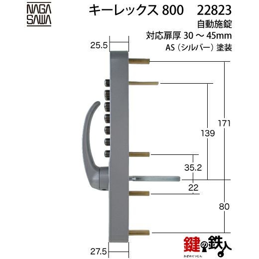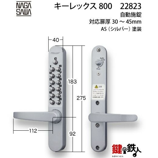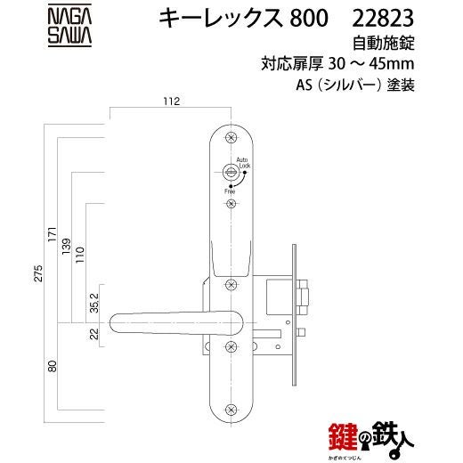 キーレックス800 自動施錠 レバーハンドル シルバー色