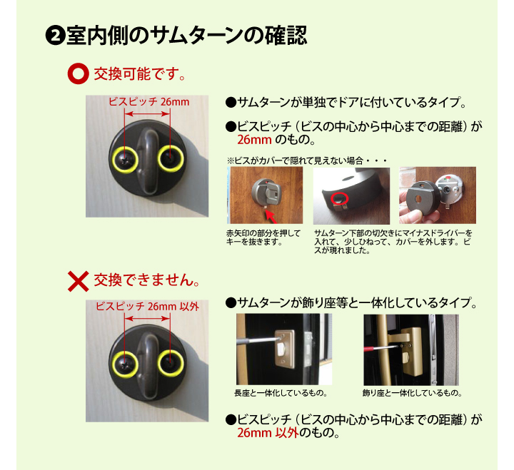 - 室内側のサムターンを、少し斜め方向から撮ってください。