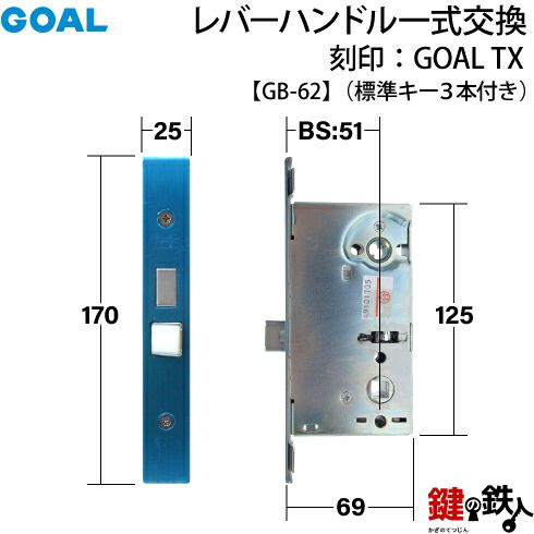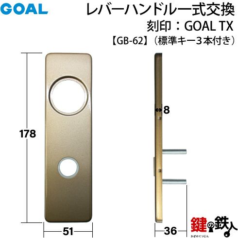 特殊錠_18 GOAL UC GFの刻印のドアノブ、円筒状の交換