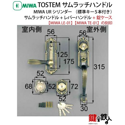 トーヨーサッシ(TOYOSASH) <MIWA LE0-2 ,TE-02>玄関錠(サムラッチ錠)鍵(カギ)交換