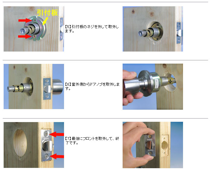 円筒錠の取外し方 (ラッチのフロントサイズなど違いはありますが、工程は同じです。)