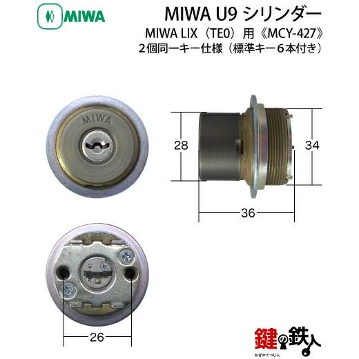 「MIWA LAMA+TE-02」「MIWA PA+TE-02」の刻印のシリンダー交換