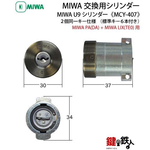 MCY-406 MCY-407 MCY-408 【1】MIWA PAの刻印(PA)とMIWA TE02の刻印(LIX)の鍵(カギ)交換用