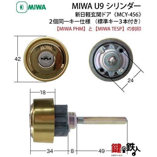 PHM+TESP交換用シリンダー・MIWA・U9シリンダー