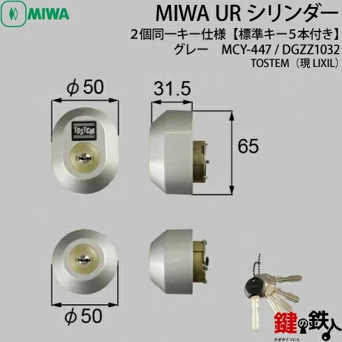 MCY-447,DGZZ1032 トステム TOSTEM(=現 リクシル LIXIL) 鍵(カギ) 取替え 交換用シリンダー・MCY-447 ドア厚み33mm用