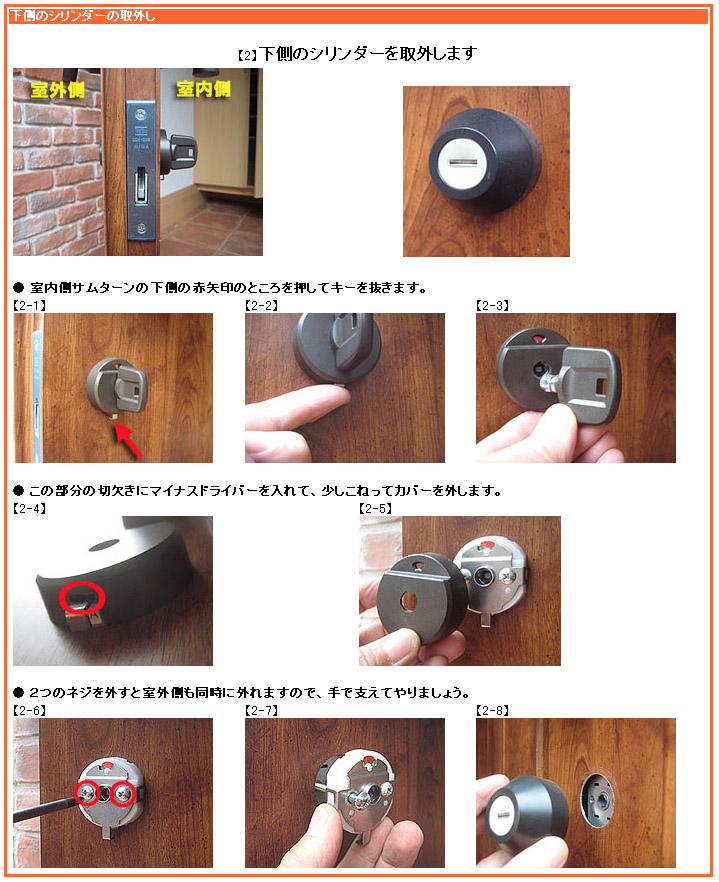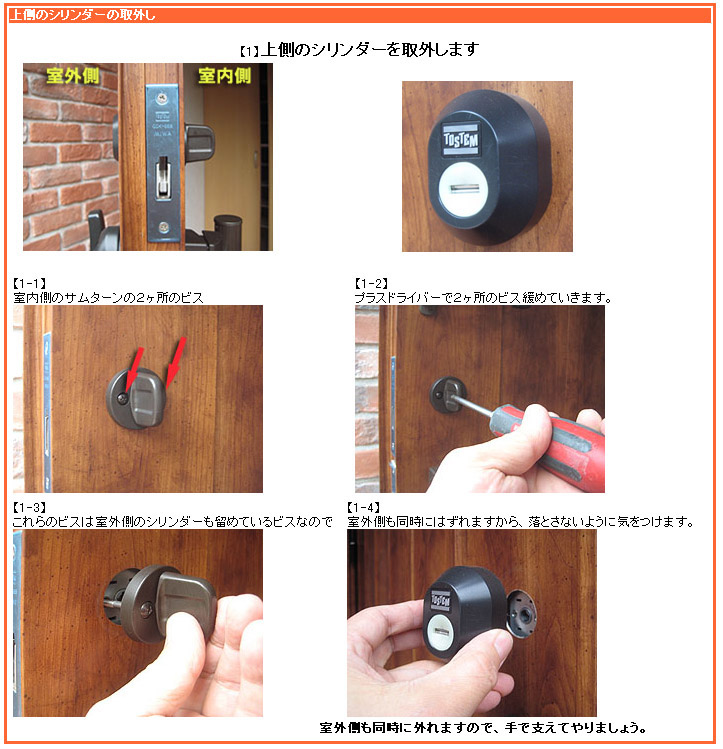 プラスとマイナスのドライバーを使います。作業が終わるまでドアが閉まらないようにして下さい。