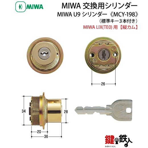 MIWA PE-SP、GAE3 交換用U9シリンダー