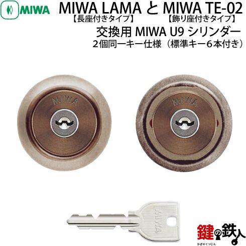 MCY-417 MCY-418 MIWA LAMA(長座付きタイプ)とMIWA TE-02(飾り座付タイプ)の交換用シリンダー