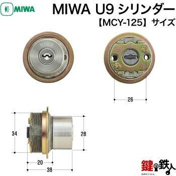 MCY-125/126/128/129 《2》MIWA LIX用 玄関 鍵(カギ) 交換 取替えシリンダー【MIWA U9シリンダー】