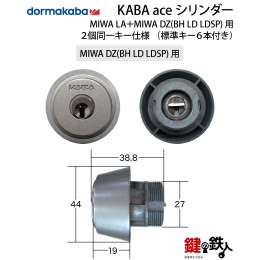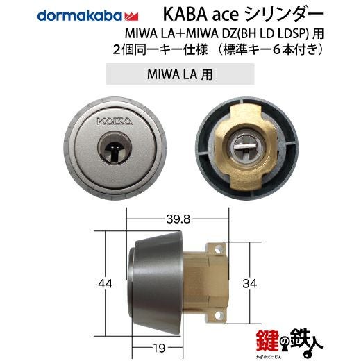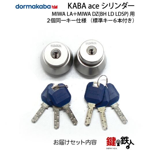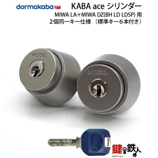MIWA BH・MIWA LA・美和ロック 【6】Kaba ace(カバエース) MIWA LA+MIWA DZ(BH LD LDSP)用交換用シリンダー2個同一キー 玄関 鍵(カギ)取替えディンプルキーシリンダー