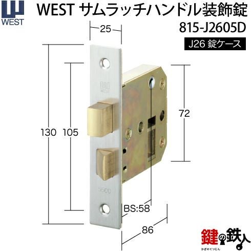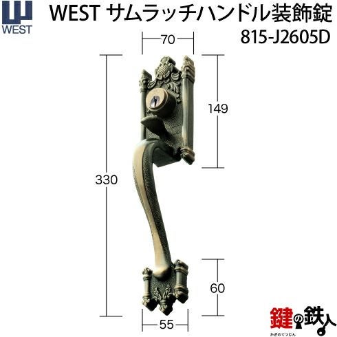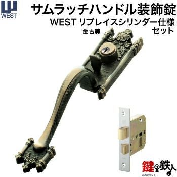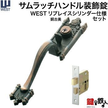 WEST アンティーク玄関錠 サムラッチハンドル装飾錠 鍵(カギ) 取替え 交換用セット