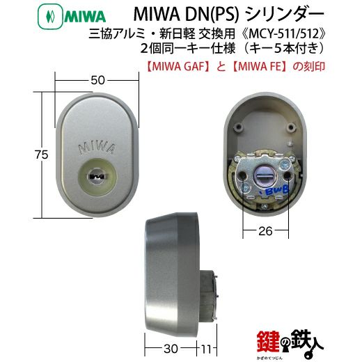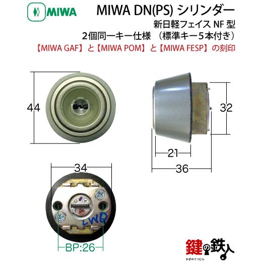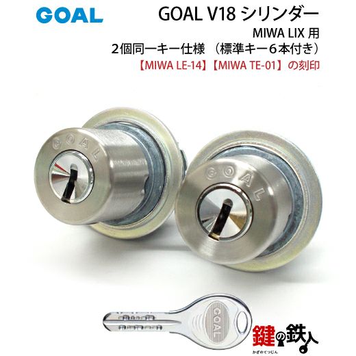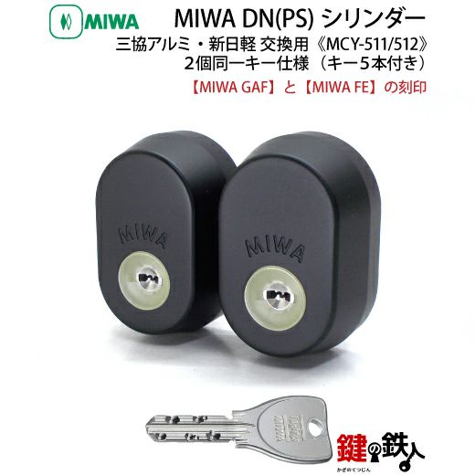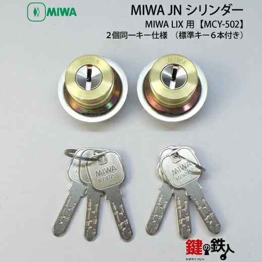 MIWA LIX用 鍵(カギ) 取替え 交換シリンダー(MIWA純正JNシリンダー) ・2個同一キーセット