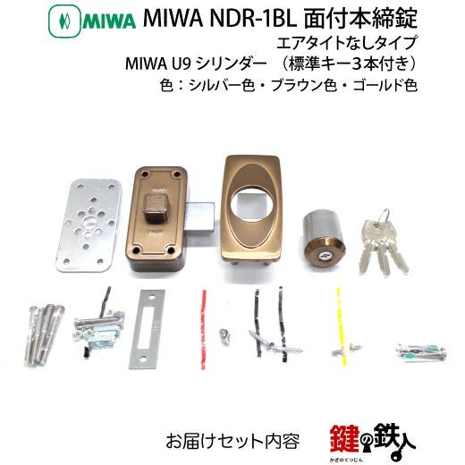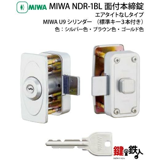 MIWA U9NDR-BL 面付本締錠シルバー色フルセット