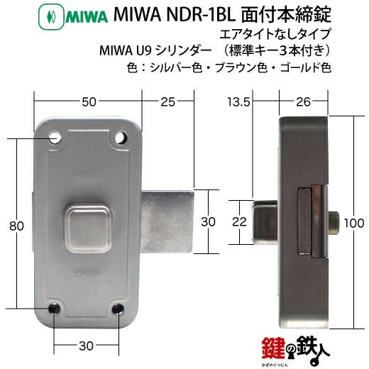 MIWA U9NDR-BL 面付本締錠シルバー色