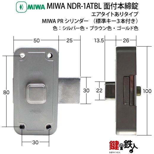 【5】MIWA PRNDR-1ATBL 面付本締錠 鍵(カギ) 交換 取替え用