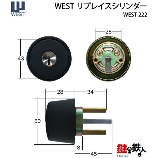 WEST リプレイスシリンダー5250用 鍵(カギ) 取替え 交換シリンダー(WEST-222)