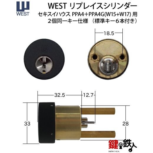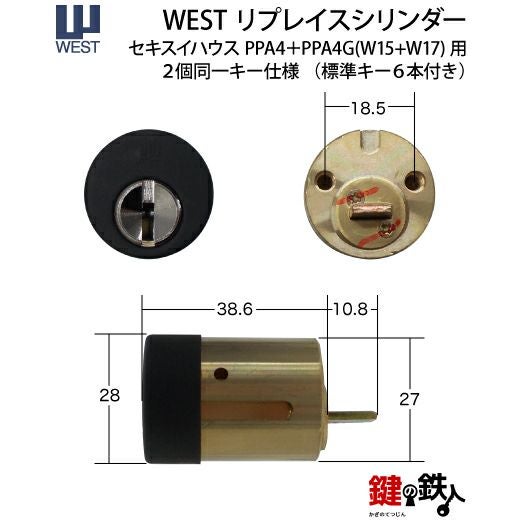 WEST リプレイスシリンダー916-PPA4D鍵(カギ) 取替え 交換用シリンダー セキスイハウス用2個同一 (40-916-PPA4)+(40-916-PPA4G)