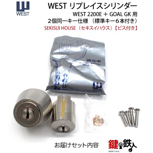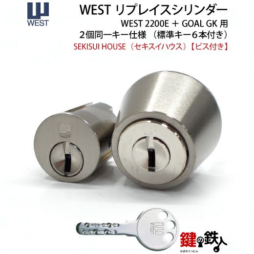 WESTリプレイスシリンダー2200E用シリンダーWESTリプレイスシリンダーGOAL・GK(テールピース指定)タイプ2個同一キーセット、シルバー色限定■標準キー6本付き■【ビス付き】【送料無料】