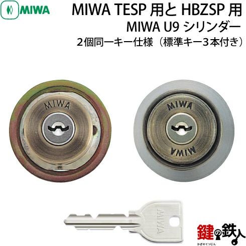 「MIWA TESP用とHBZSP用交換用シリンダー」 2個同一キータイプ