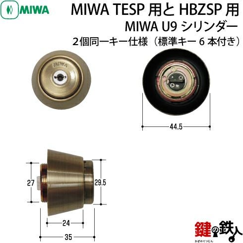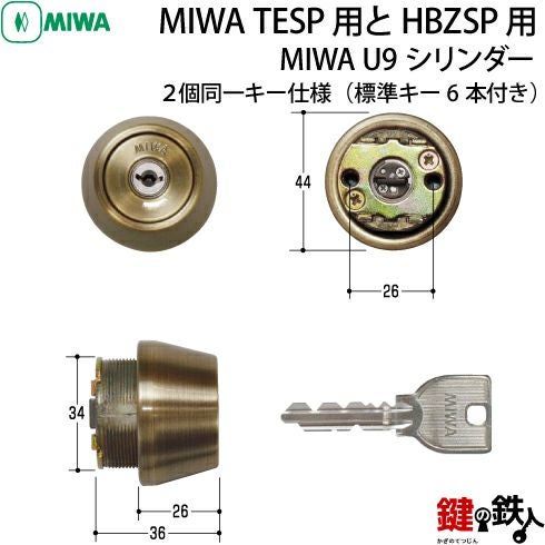 「MIWA TESP用とHBZSP用交換用シリンダー」 2個同一キータイプ