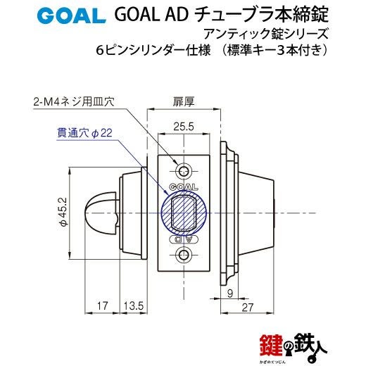 GOAL AD チューブラ錠(補助錠)アンティックタイプ【玄関用】