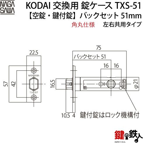 TXS-51錠 KODAI 取替え 交換錠ケース 角丸仕様