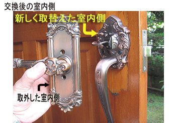 新しいタイプは、室内側も外側と同じサムラッチ錠という親指で、トリガーを押し込んで開閉するタイプになります。