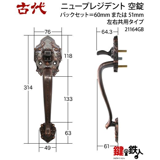 | 古代 プレジデント錠本体の取付注意事項 |