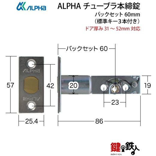 《1》ALPHA アルファ チューブラ本締錠 ドア 鍵(カギ) 交換 取替え
