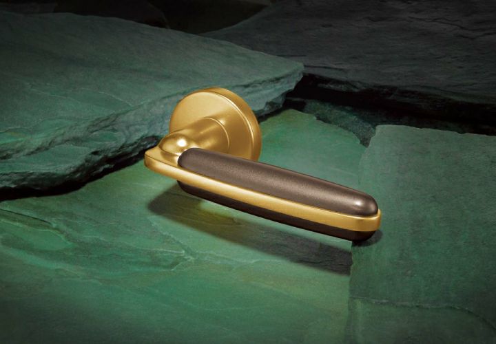 形はオーソドックスなレバーハンドルですが、ゴールド色とアンバー色を合わせたデザインで高級感のあるハンドルになります。