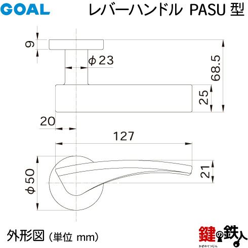 アルミ製 PASU型レバーハンドル(シルバー・ゴールド・ライトブラウン)