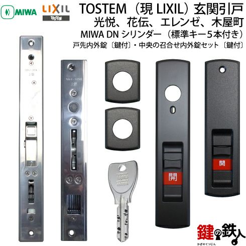 トステム TOSTEM(=現 リクシル LIXIL)玄関引き戸 エレンゼ・花伝・木屋町・光悦・リシェントの共通の戸先内外錠〔鍵付〕・中央の召合せ内外錠セット〔鍵付〕同一キー仕様のセット