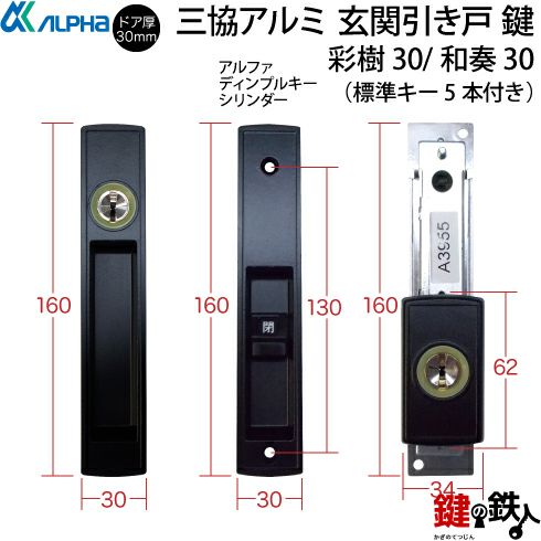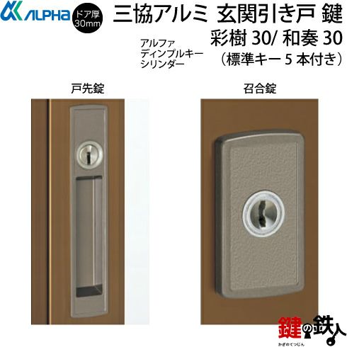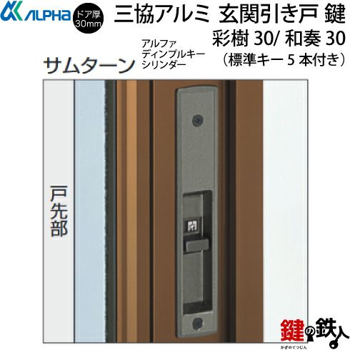 三協立山アルミ、引違い戸(2枚建)の「彩樹30(さいじゅ)」「和奏30(わかな)」の玄関錠(カギ)の交換の案内