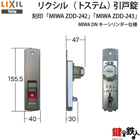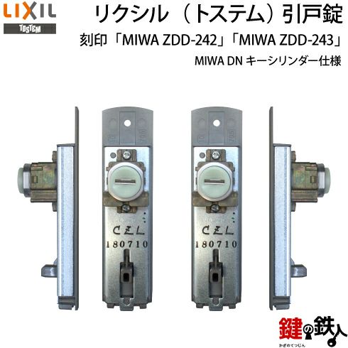 トステム(現LIXIL)ガゼリアNエアスライド デュオSG エレンゼ・花伝・木屋町・光悦・勝手口引戸、玄関片引き戸 トステム(現LIXIL)ガゼリアNエアスライド デュオSG エレンゼ・花伝・木屋町・光悦・勝手口引戸、玄関片引き戸MIWA ZDD-242とMIWA ZDD-243の刻印 上下同一キー2個セット DNシリンダー キー3本付き 鍵(カギ) 交換