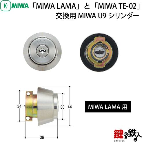 勝手口 MIWA LAMAとMIWA TE-02の交換用シリンダー