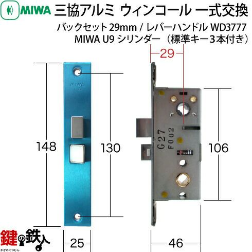 MIWA LZ-2/U9シリンダー仕様/レバーハンドルWD3775型/バックセット29mmタイプ |