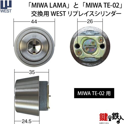 【3】MIWA LAMA(LA・DA)とMIWA TE-02(LSP)の交換用、操作性が良いWEST リプレイスシリンダー鍵(カギ) 取替えシリンダー