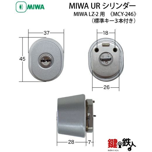 MIWA LZ-2 取替え用シリンダー(楕円形-エアパス6型)