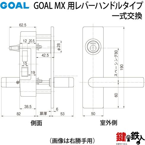 GOAL MXレバーハンドルタイプの玄関の鍵の交換 取替え用