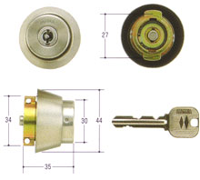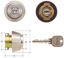 上と下の2個のシリンダーが、1本のキーで操作できるように、「2個同一キータイプ」となっています。