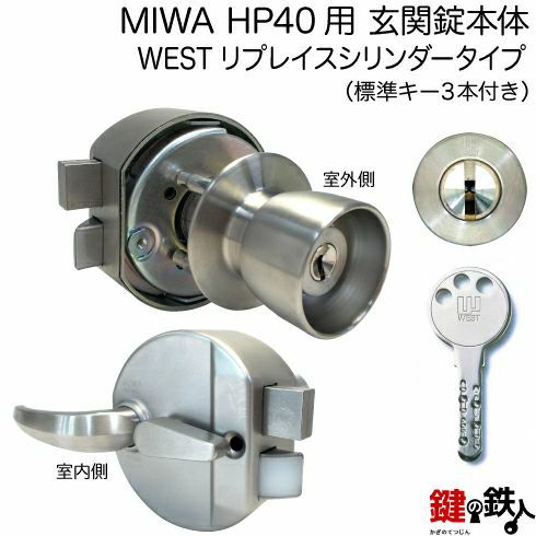 40KJ錠本体+WESTリプレイス・40KJ 鍵(カギ) 取替え 交換シリンダー