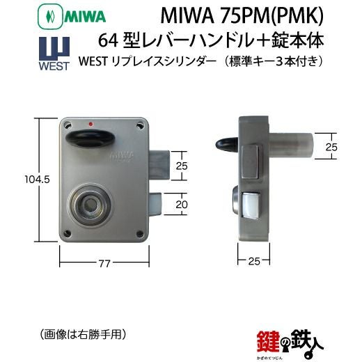 《3》64型レバーハンドルタイプの75PM(PMK)錠本体+