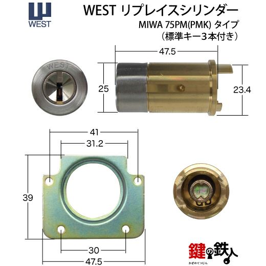 MIWA 75PM(PMK) 玄関 鍵(カギ)交換用