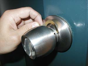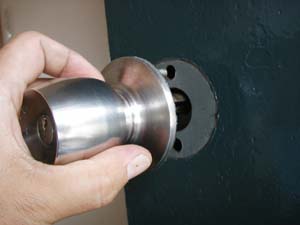 【1】部屋内側のローズ部分を反時計回りにまわします。素手で回る場合が大半ですが、堅く締め付けてある場合があります。