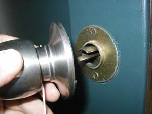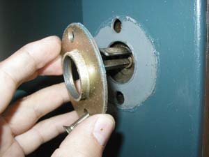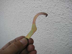 【3】ファスナーを引っ掛けて反時計回りに回してください。硬い時は、無理せずにハンマーなどを使ってみましょう。(MIWA製の場合は、パイプレンチなどでローズを回します。)